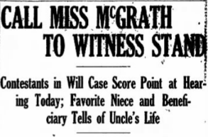 With the death of her husband, Henry McGrath’s wife, Mary, appealed for her release. It was said she no longer had any ‘symptoms’ and should be released from care. The contested will went to the Supreme court in 1916. There are newspaper articles nearly every day in February that year covering the case. The McGrath’s total estate was valued around $700k. (please look this up in today’s dollars- it’s insane)