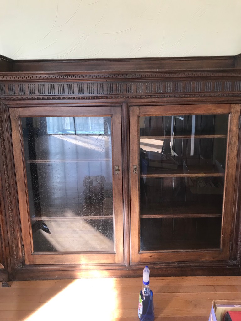 I started in the parlor and cleaned the built-ins first because I felt it would be the most rewarding start that could motivate me to tackle the downstairs bathroom…