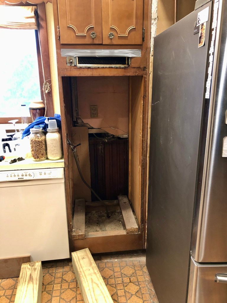 We ordered a new double oven to replace the old one, and we found a used range that fit the old space almost perfectly on facebook marketplace and got a bonus “new” dishwasher from them too. We had our electrician come back to change out our recessed lighting, and hook up the appliances, and with some of the major parts completed, we made our way to IKEA to put in a new center island.